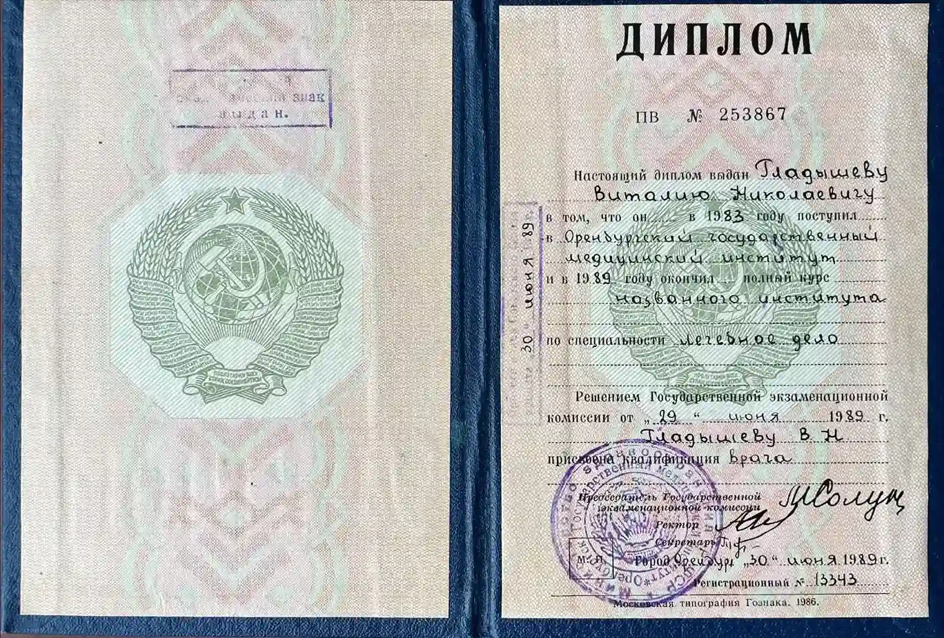 - Специальность «Лечебное дело» в Оренбургском государственном мединституте (ОрГМУ). Специальность «Психиатрия-наркология» (интернатура) в ОрГМУ. Специальность «Организация здравоохранения и общественное здоровье» (переподготовка) в Московском государственном медико-стоматологическом университете. Специальность «Экспертиза временной нетрудоспособности» (повышение квалификации) в Первом Московском государственном медицинском университете (МГМУ) им. Сеченова. Специальность «Психиатрия» (повышение квалификации) в Первом МГМУ им. Сеченова.